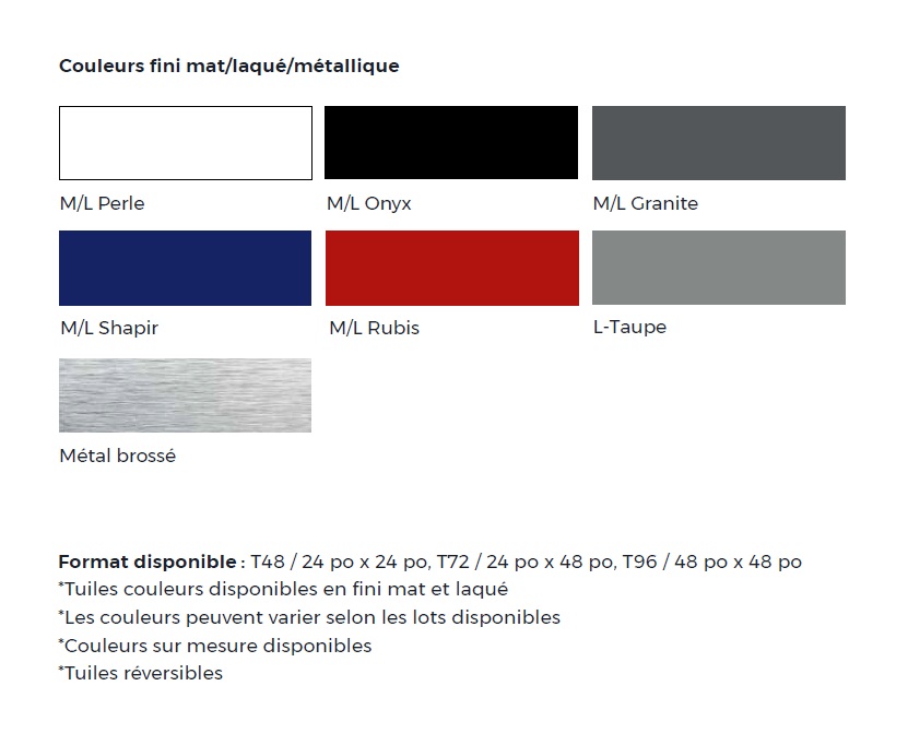 - Disponible en différentes grandeurs standards : 2X2, 2X4 et 4X4;